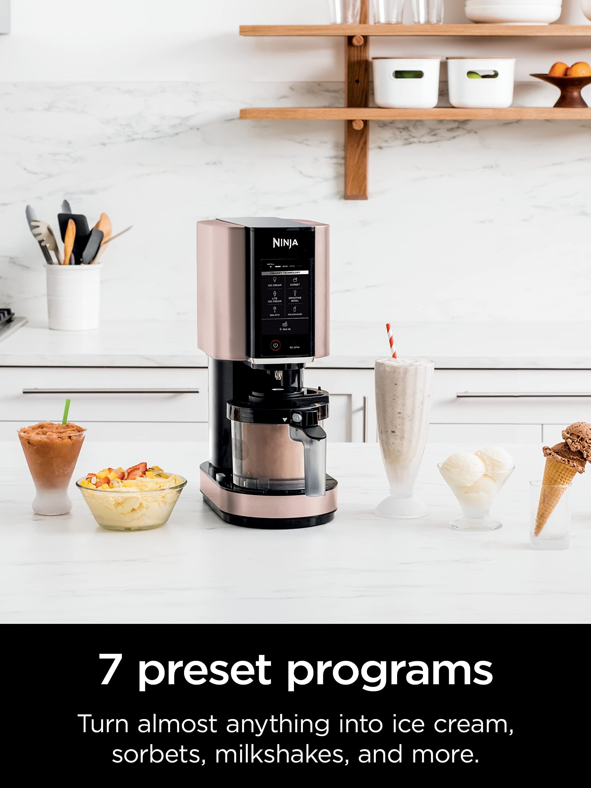 Ice Cream Maker, For Gelato, Mix-Ins, Milkshakes, Sorbet, Smoothie Bowls & More, 7 One-Touch Programs, With (2) Pint Containers & Lids, Compact Size, Perfect For Kids, Rose Gold