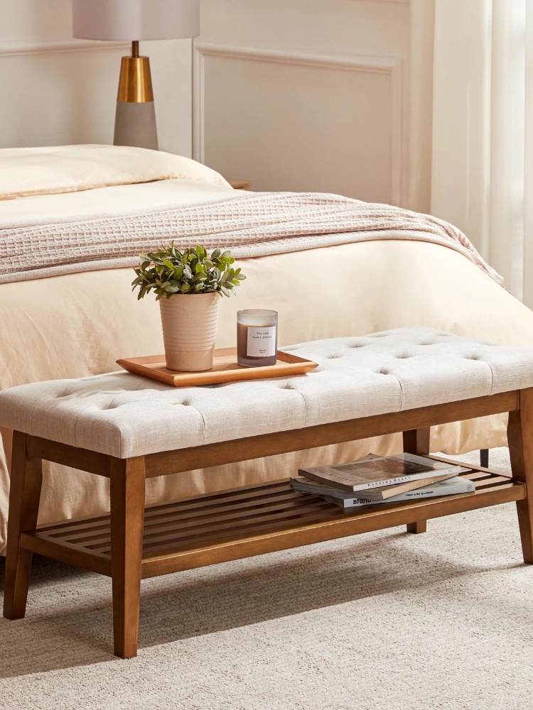 We have benches in different design styles. The linen fabric bench is practical and durable, not easily worn; the faux leather fabric is waterproof and easy to clean; the shoe rack style design provides storage space and gives you a neat environment. We provide you with four different designs, you can choose different products according to different needs.