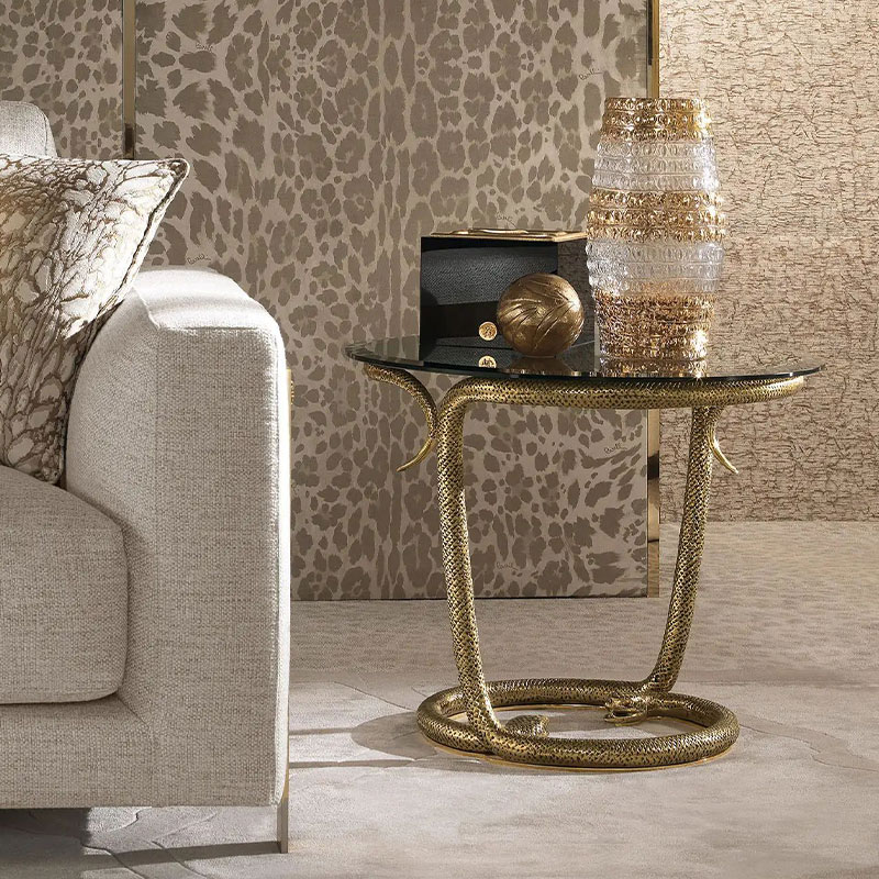 Italian Light Luxury Pure Copper Snake Head Side Table