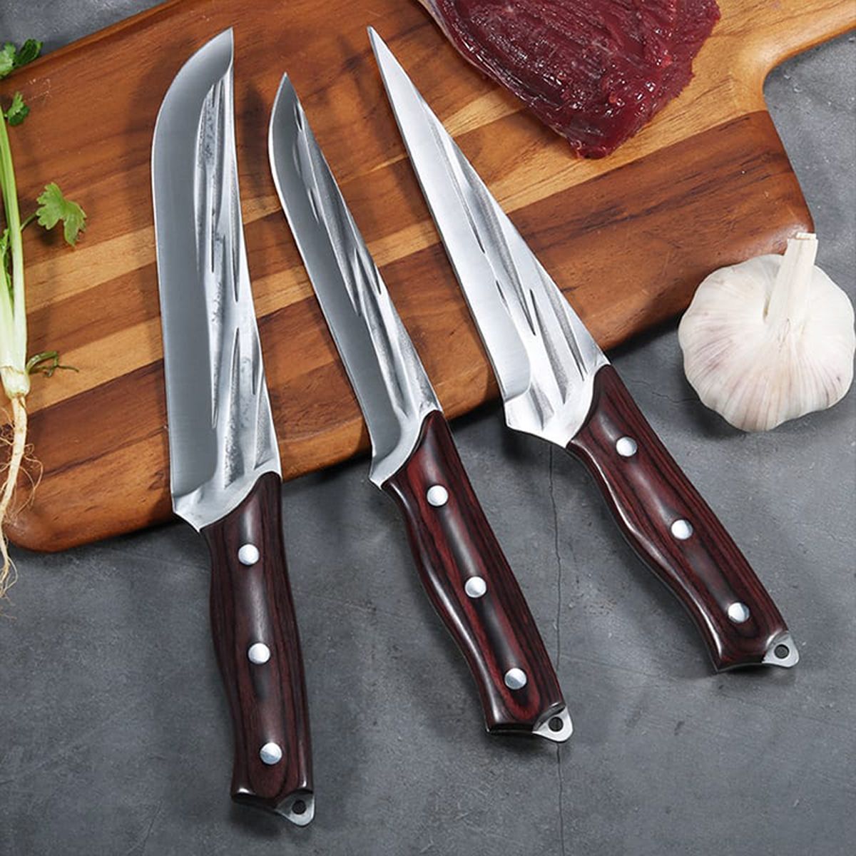 Kitchen Purple Ebony Carving Knife + Boning Knife + Chef'S Knife (With Sheath)