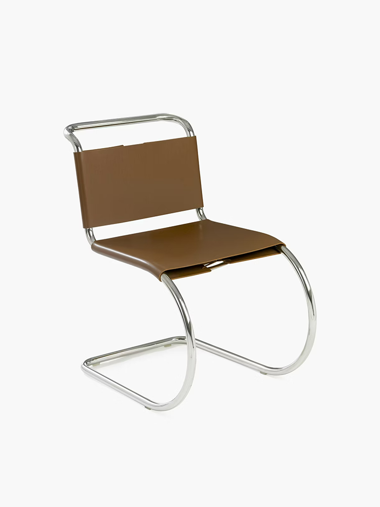 • The MR Collection represents some of the earliest steel furniture designs by Mies van der Rohe. The material choice was inspired by fellow Bauhaus master Marcel Breuer, while the forms are thought to be modern derivatives of 19th century iron rocking chairs.