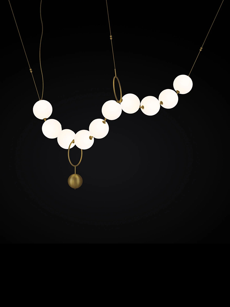 Coco by Larose Guyon evokes that supple, elegant and wondrous intersection of jewellery and light. Like a string of pearls, this lamp’s 10 hand-blown glass globes can be arranged in several configurations to adapt to the setting where it will be admired. The finishing touch for this luminous gem is a counterweight and hook that can be added or moved from one “pearl” to another, providing all the flexibility needed for the lamp to fit its space to perfection.