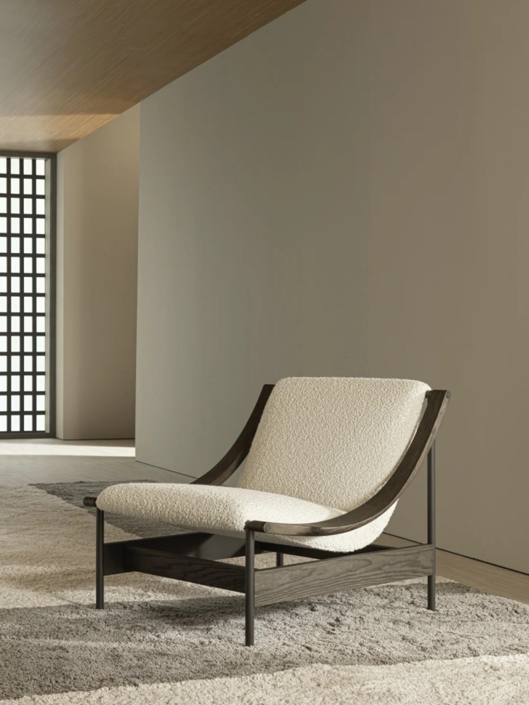 At the heart of its design is a gracefully suspended seat, supported by a slender yet robust metal frame. The defining detail—the sinuous, scythe-shaped oak armrests—bears the unmistakable signature of GamFratesi. This fusion of Scandinavian purity and Italian innovation results in an armchair that is both visually striking and exceptionally comfortable.