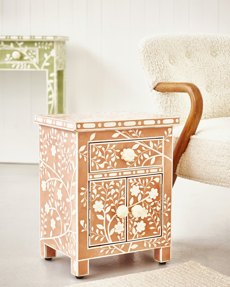 Lohko Rose Pink Floral Inlay Bedside Cabinet
