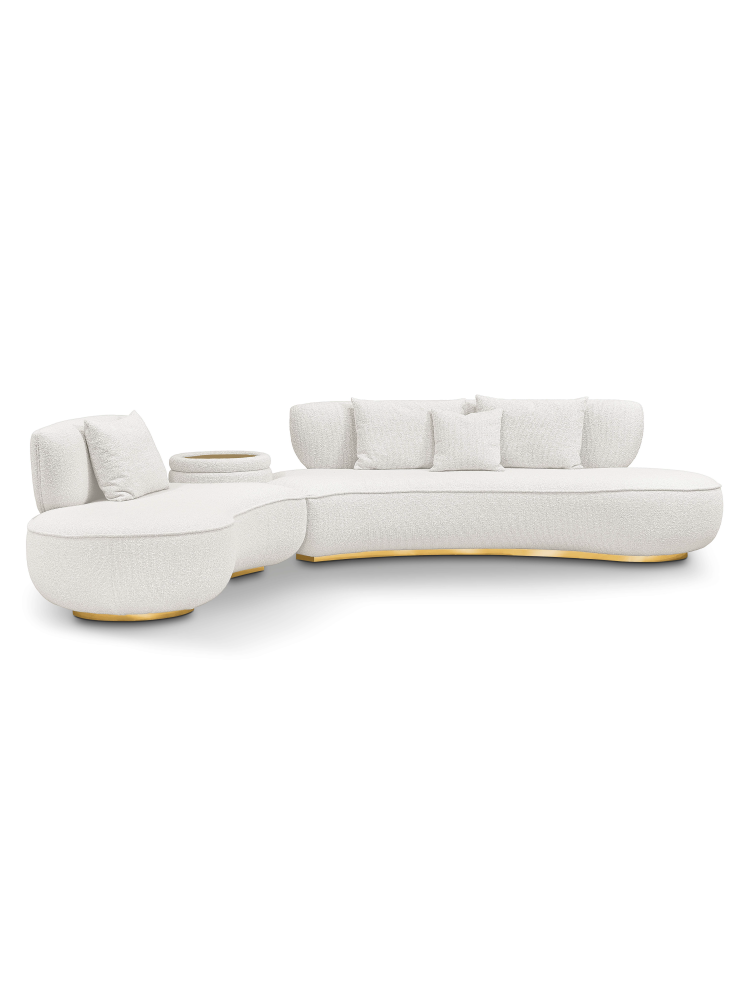 • Talie embodies the majestic aura of mid-century modern style with its rounded corners, soft edges, and distinctive details. Upholstered in Monet Pearl fabric with geometric patterns, it features brass accents and an integrated side table. Talie seamlessly introduces neutral glamour to any living room while offering convenient charging solutions with its built-in system, including one wireless charger and two USB power ports.