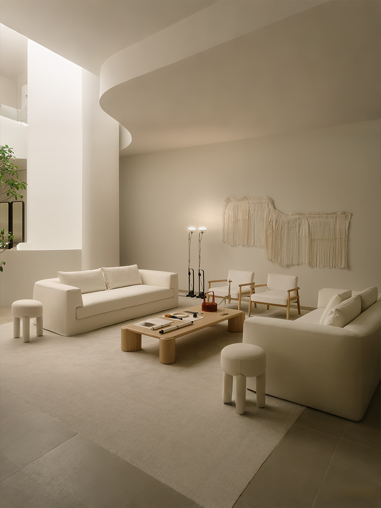 • Roger Ghost is a linear sofa that evolves from the Roger modular seating system. It shares the original concept of welcoming simplicity - etymologically meaning 'to be folded only once.' Its design features a continuous, almost uninterrupted surface that changes direction to create a reassuring embrace, all while maintaining an elegance defined by essential, soft lines.