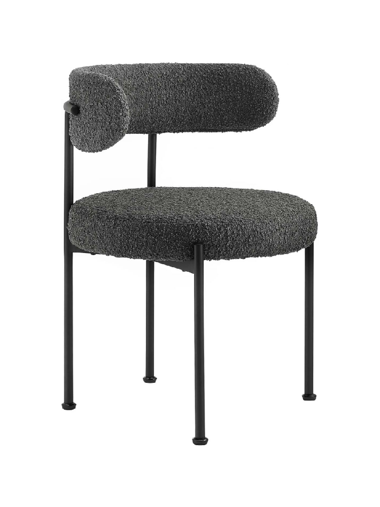 Metal Frame Round Boucle Upholstered Dining Chair