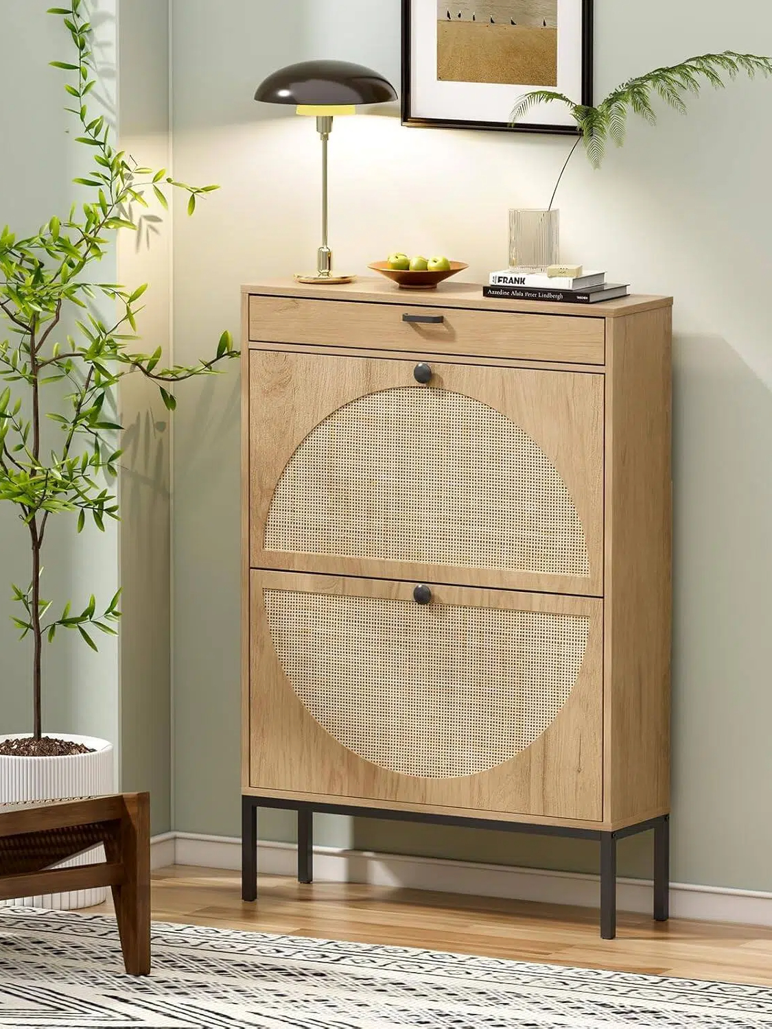 • 【Classic design of natural rattan weave】:Made of sturdy MDF and hand-woven natural rattan, the shoe cabinet is even more elegant and classic. The slim shoe cabinet can easily fit into the narrow spaces of foyers and entryways. The natural elements of the furniture better decorate your home environment.