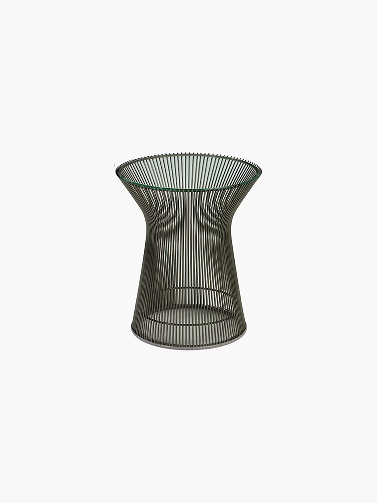 • In 1966, the Platner Collection captured the "decorative, gentle, graceful" shapes that were beginning to infiltrate the modern vocabulary. The iconic pieces are created by welding hundreds of curved steel rods to circular frames, simultaneously serving as structure and ornament.