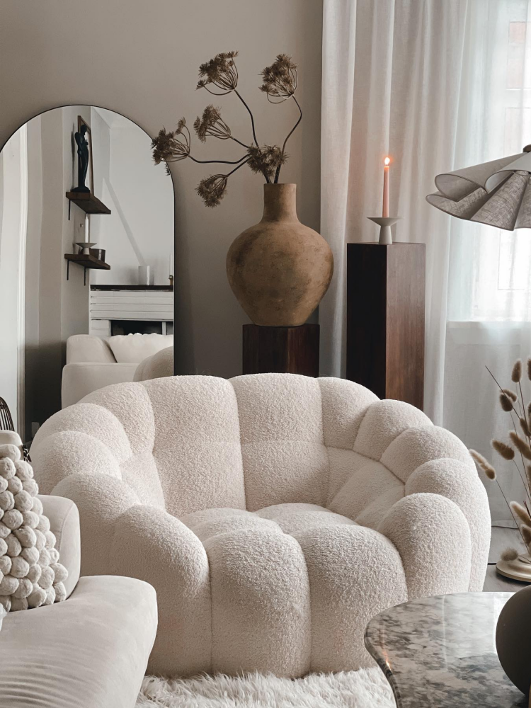 Introducing the Bubble Sofa Chair, a plush and contemporary addition to elevate your living space. Upholstered in soft-touch premium boucle fabric, this chair combines modern style with exceptional comfort. The sturdy wood frame ensures durability, while the generously padded seat offers a relaxing retreat. With its minimalist design and cozy appeal, the Bubble Sofa Chair makes a stylish and inviting statement in any home.