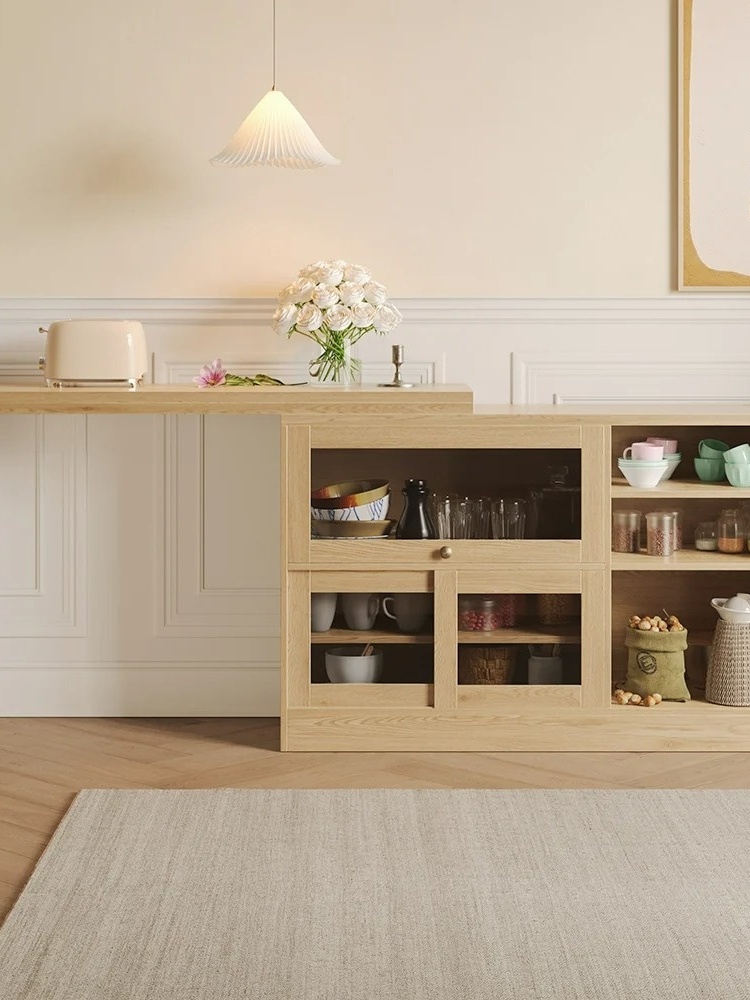 • Versatile storage space: With a combination of open shelves, revolving doors and sliding doors.