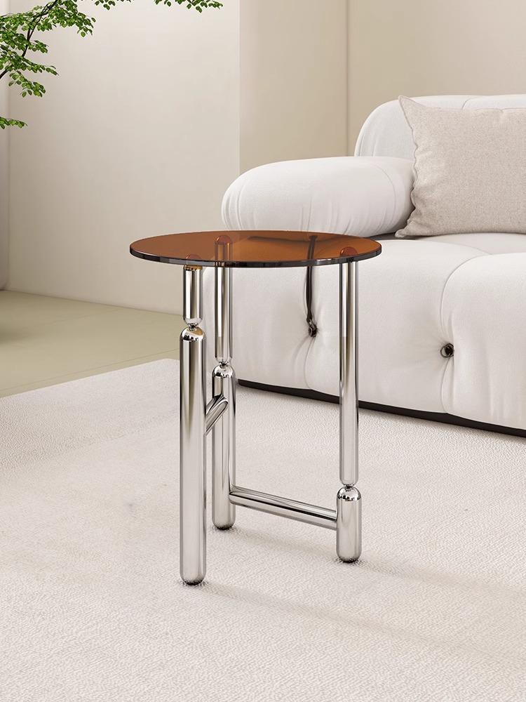 • Tinted Glass Tabletop: The circular tabletop is crafted from high-quality tempered glass, offered in a warm amber hue or clear finish. Its smooth, glossy surface adds refinement while enabling effortless cleaning—ideal for holding drinks, books, or decor without spill concerns.