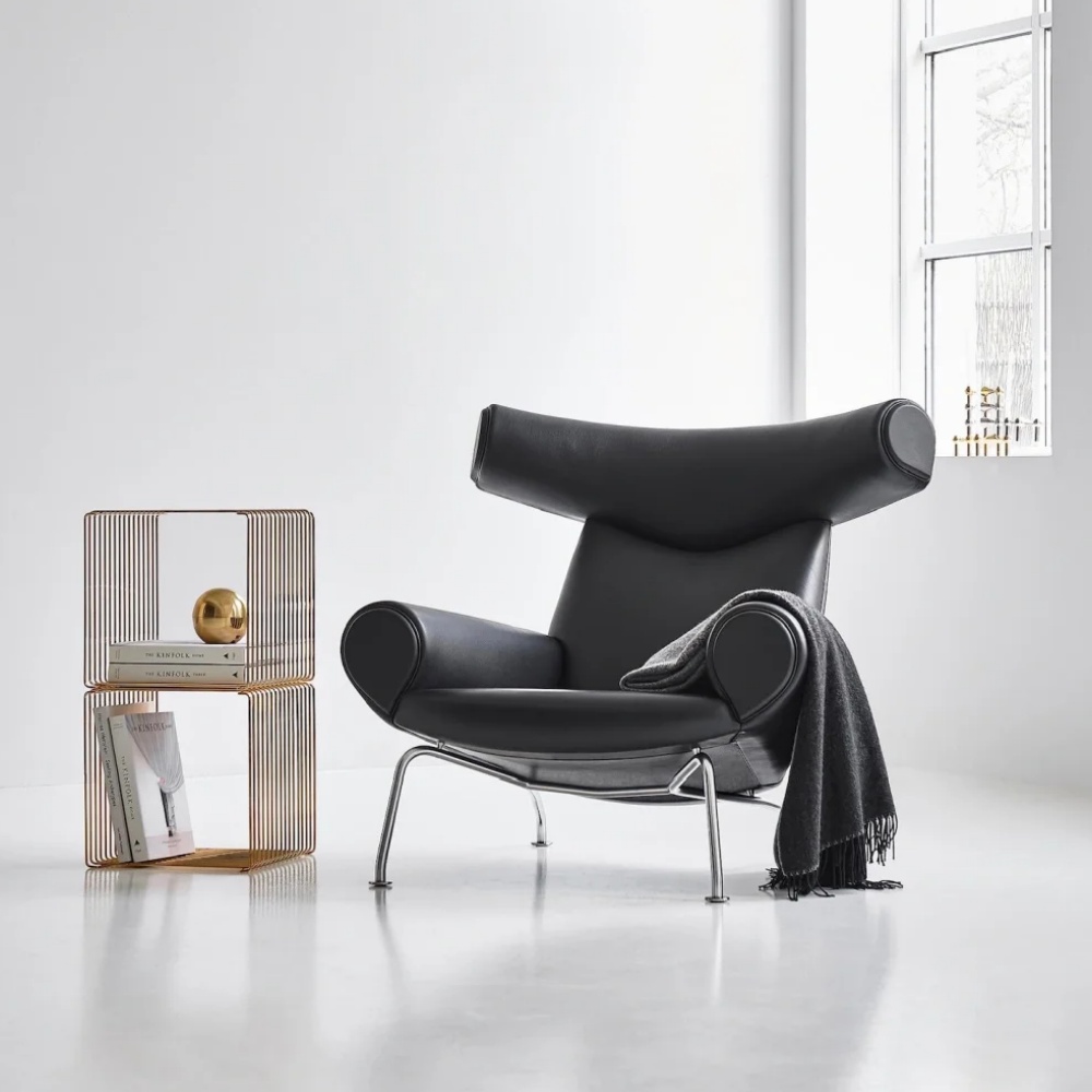 Modern Wegner Ox Chair Leather Lounge Chair, Black & Brown & White