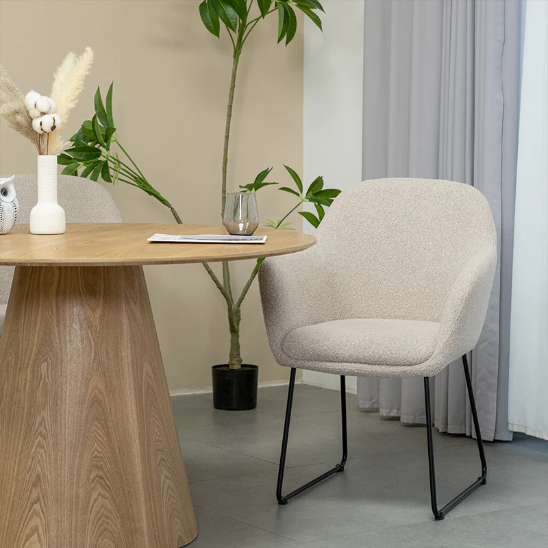 • 【Boucle Fabric Comfort】Crafted from boucle fabric, our boucle dining chair provides a comfortable, durable, and nature-inspired texture. The soft and wear-resistant material enhances the overall quality.