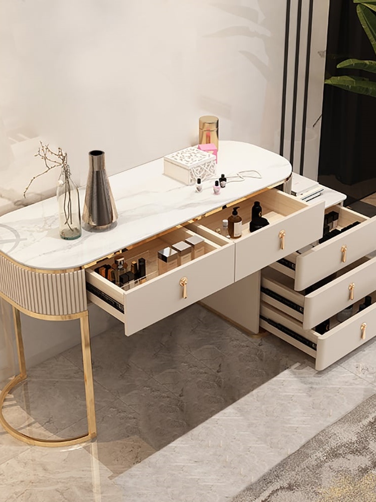 Nordic Makeup Vanity Extendable With 5-Drawer Dressing Table With Stone Top In Champagne