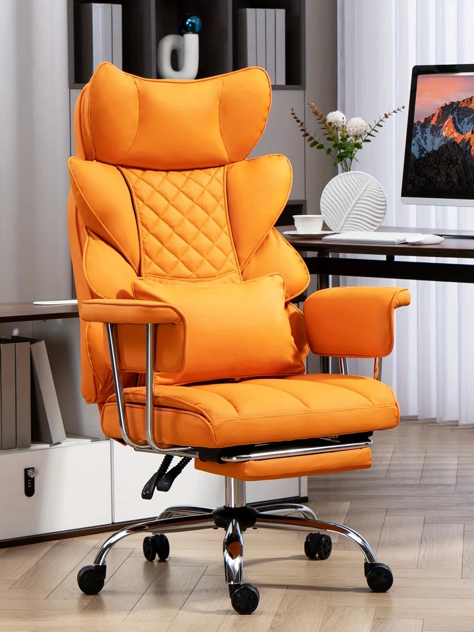 Office Chair In Vibrant Orange - Faux Leather With Quilted Upholstery, Metal Frame, Adjustable Armrests, Lumbar Support & Leg Rest