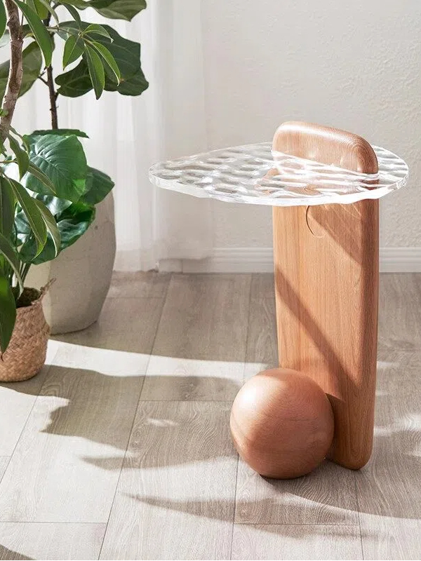 • Elevate your space with a side table that doubles as a sculptural artwork—where natural wood warmth meets the ethereal beauty of textured glass. This design-driven accent piece blends organic shapes, artisanal craftsmanship, and everyday functionality to transform any corner into a focal point.