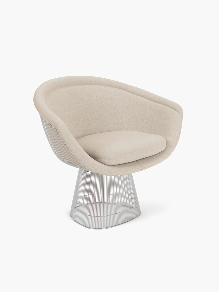 • In 1966, the Platner Collection captured the "decorative, gentle, graceful" shapes that were beginning to infiltrate the modern vocabulary. The iconic pieces are created by welding hundreds of curved steel rods to circular frames, simultaneously serving as structure and ornament.