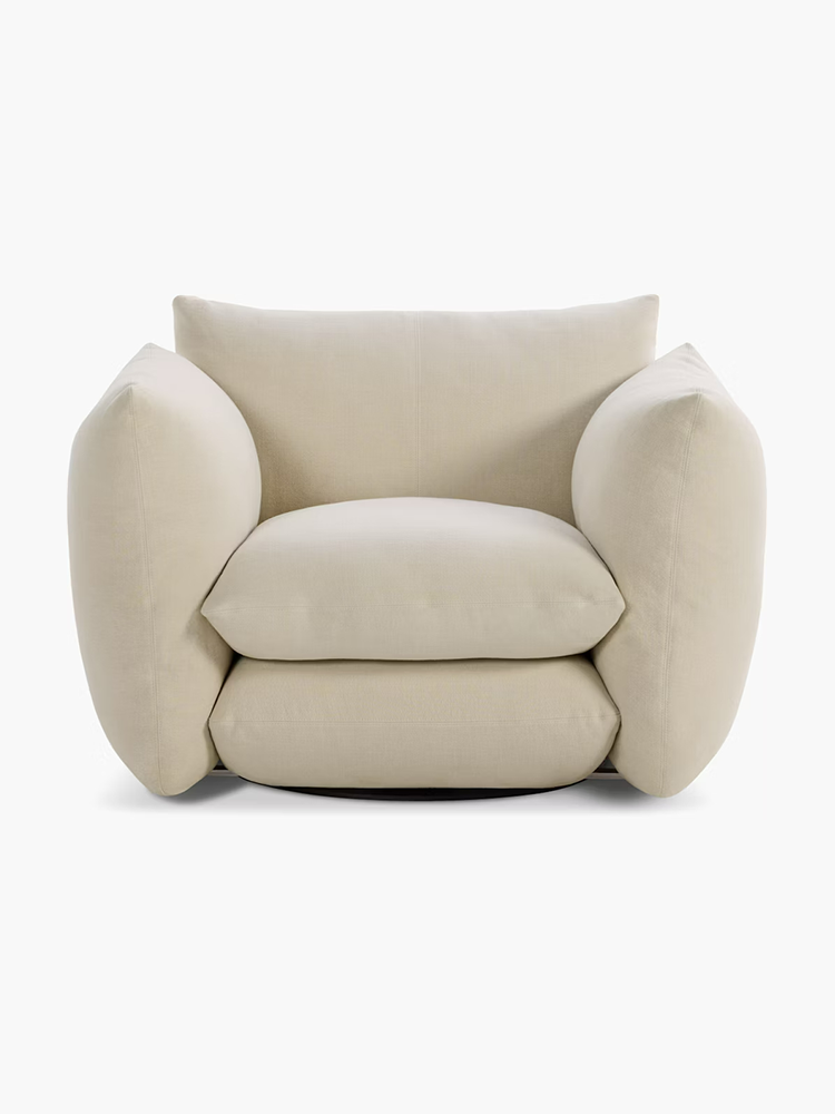 • With a deep seat designed to be sat in, not on, the Perron Pillo Lounge Chair—available with a swivel or fixed base—is a welcoming refuge that invites relaxation.