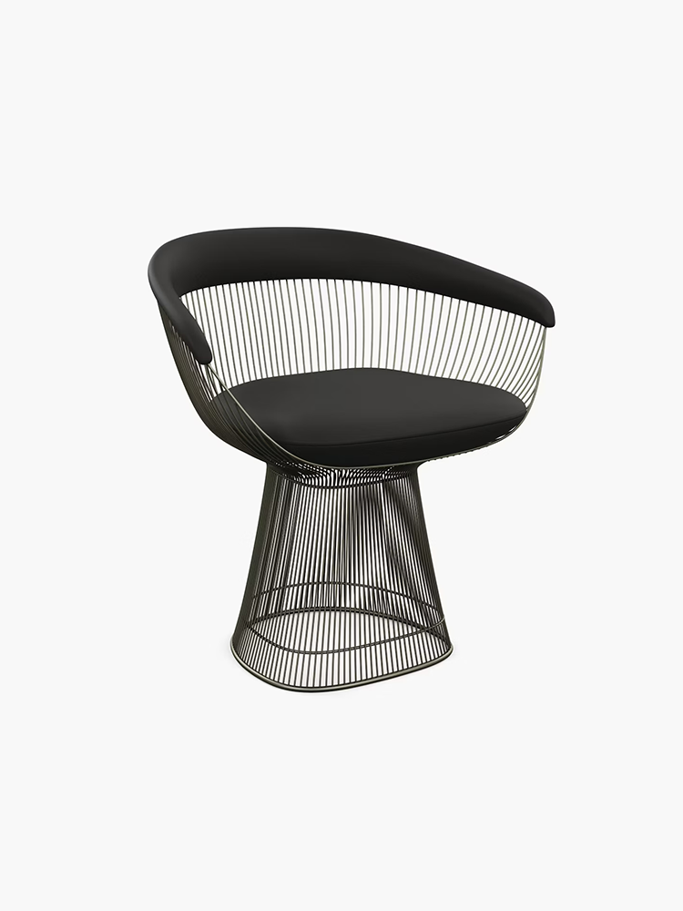 • In 1966, the Platner Collection captured the "decorative, gentle, graceful" shapes that were beginning to infiltrate the modern vocabulary. The iconic pieces are created by welding hundreds of curved steel rods to circular frames, simultaneously serving as structure and ornament.