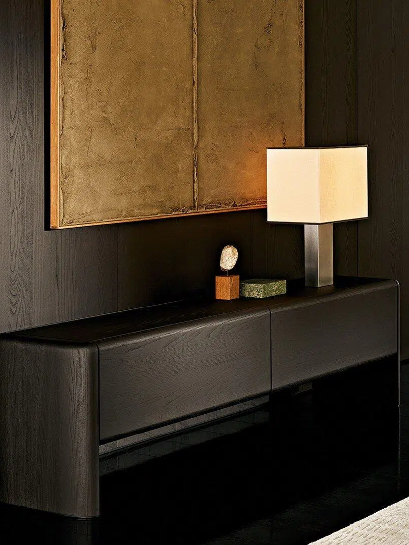 The Duke kitchen cabinet collection uses curved lines to reduce its bulky appearance, showcasing exquisite joinery and high-quality handcraftsmanship. Available in various heights and sizes, Duke cabinets stand out in living spaces with their prominent presence, and are also favored for their refined details, such as the trays with metal frames and leather bases placed on the cabinet surfaces.