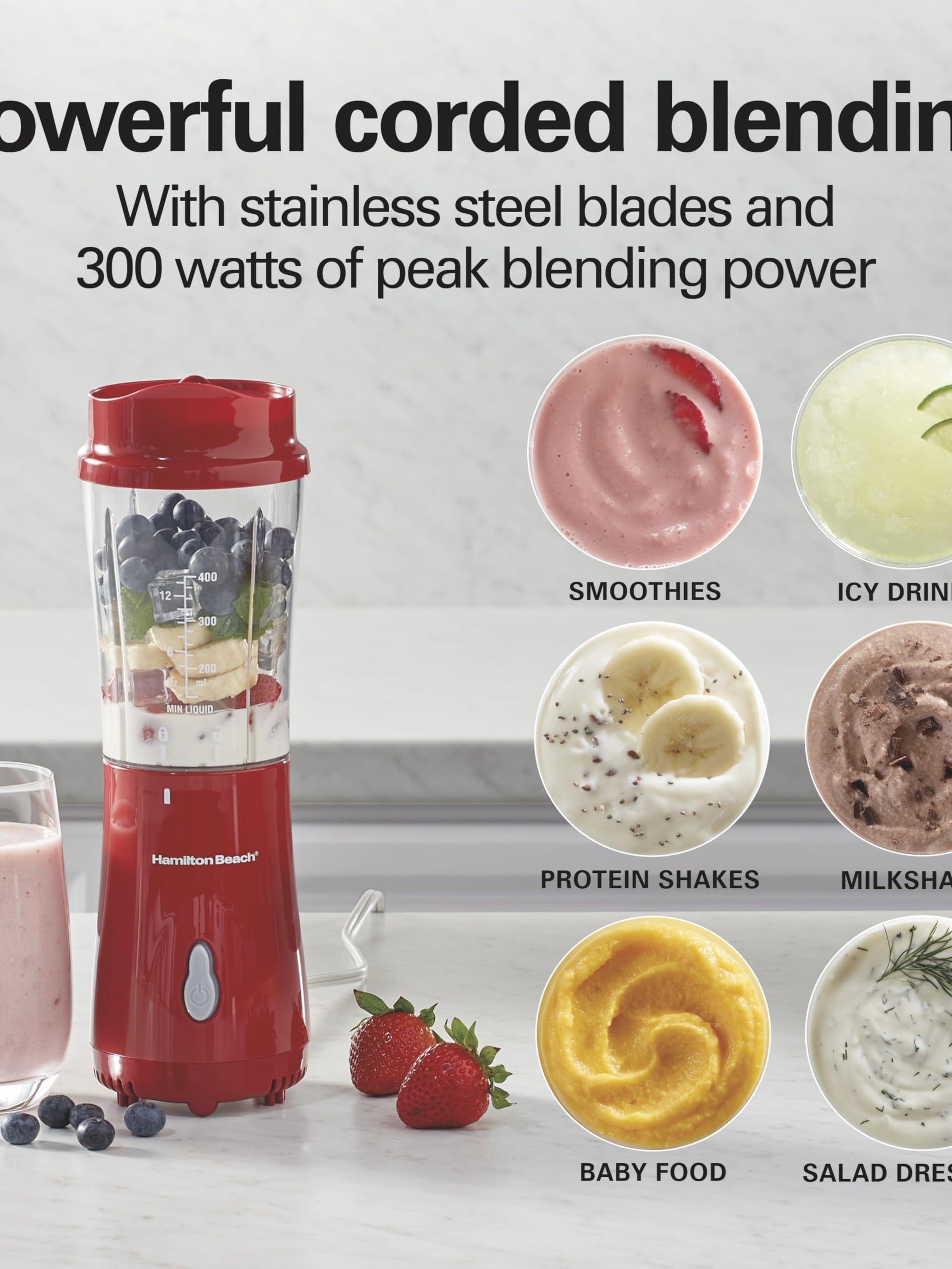 • THE ORIGINAL BLEND & GO PERSONAL BLENDER: Bring home the excellent blending performance you expect with the historic Hamilton Beach brand. Hamilton Beach has excelled in appliance innovation since 1911 and has pioneered personal blending since 2003.