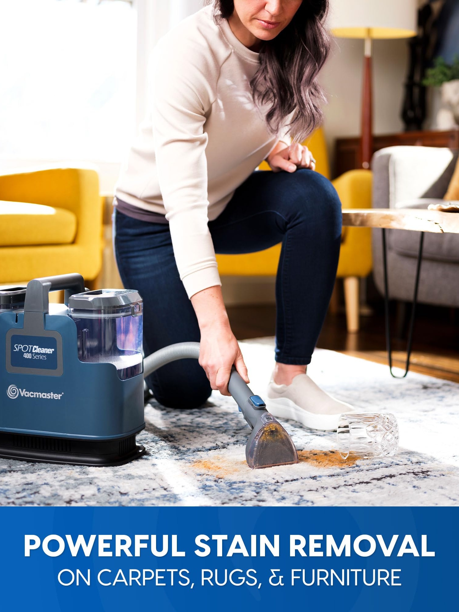 Deep clean spots and stains on carpets, rugs, furniture, and auto interiors