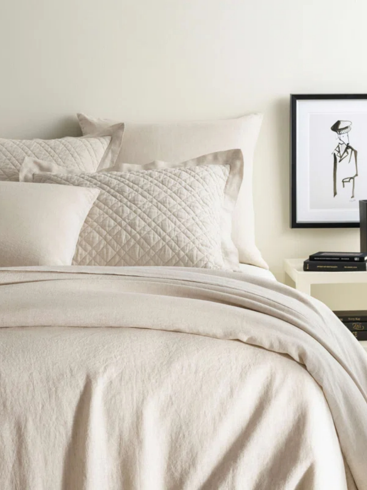 Speckled with intermingled black and white threads, this salt-and-pepper marled duvet cover is made of softly stonewashed, exquisitely textured, cool, and drapey linen. Sleep better and deeper as you tumble into rumpled bliss, our laundered lush linen will keep you comfortable all night long. With a masculine marled weave and a sophisticated texture, this duvet cover has a reliably understated urban elegance.