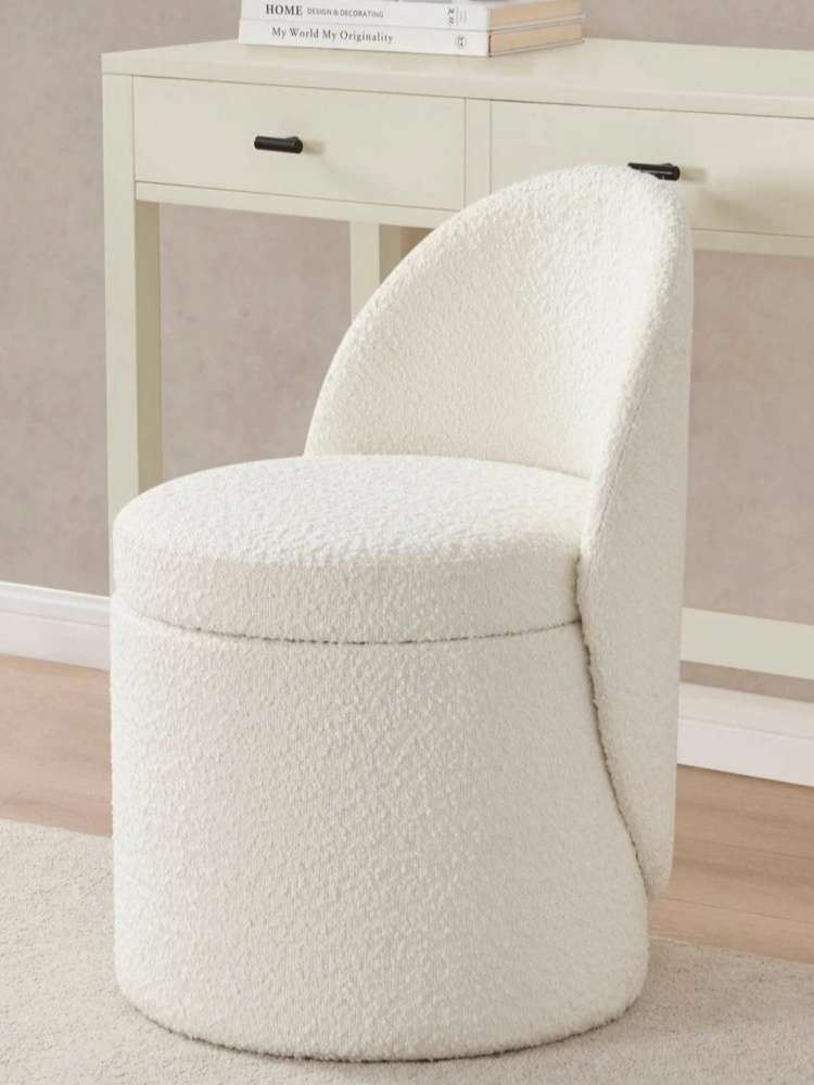 Primrose Dressing Table Storage Stool - Boucle Ivory