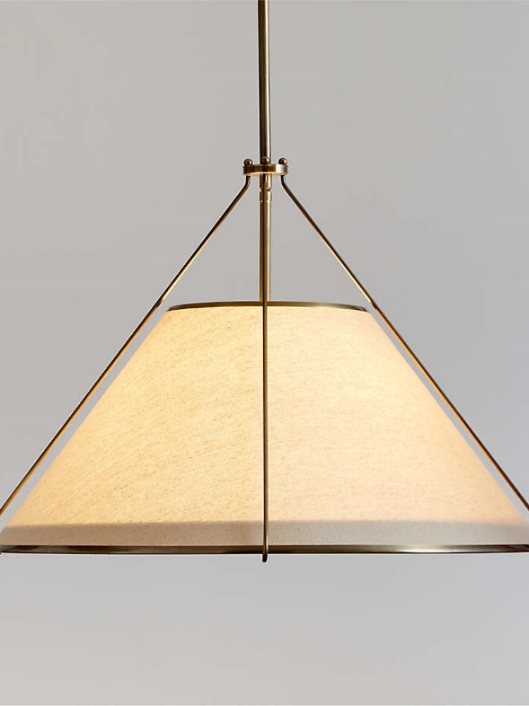 An updated take on the pendant light, Remi houses a classic taper shade within a conical cage of burnished brass for a look that's airy and contemporary. The natural linen shade harmonizes with the gleaming metal, and the white diffuser adds a second serene neutral while filtering light softly. Our exclusive Remi pendant light provides pleasant illumination overhead-no exposed bulb-whether hung individually above a breakfast table or in multiples down the length of a kitchen island or dining table.