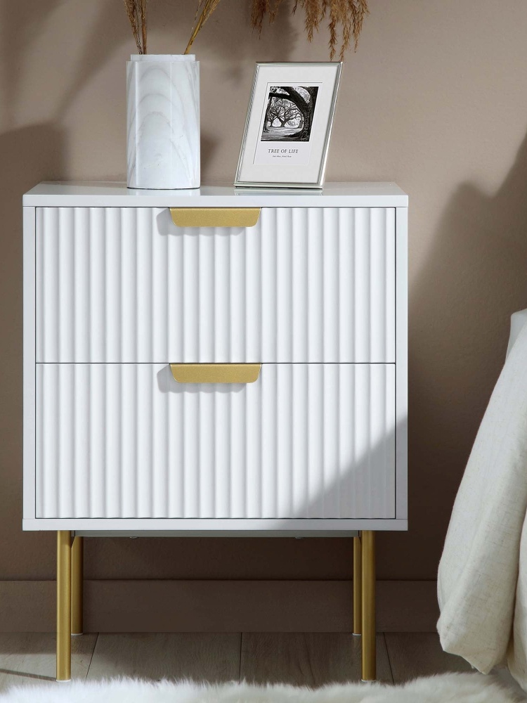 Richmond Ridged 2 Drawer Bedside Table, Matte White