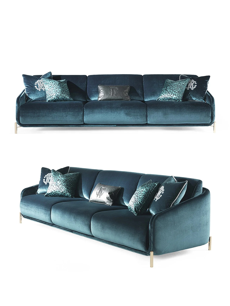 • A one-of-a-kind, sensual sofa - the perfect expression of the true essence of the brand. Available in different textural and luxurious fabrics and leather, the sofa is enriched with cushions with animalier patterns, that wink at the wildest spirit of Roberto Cavalli Home Interiors.