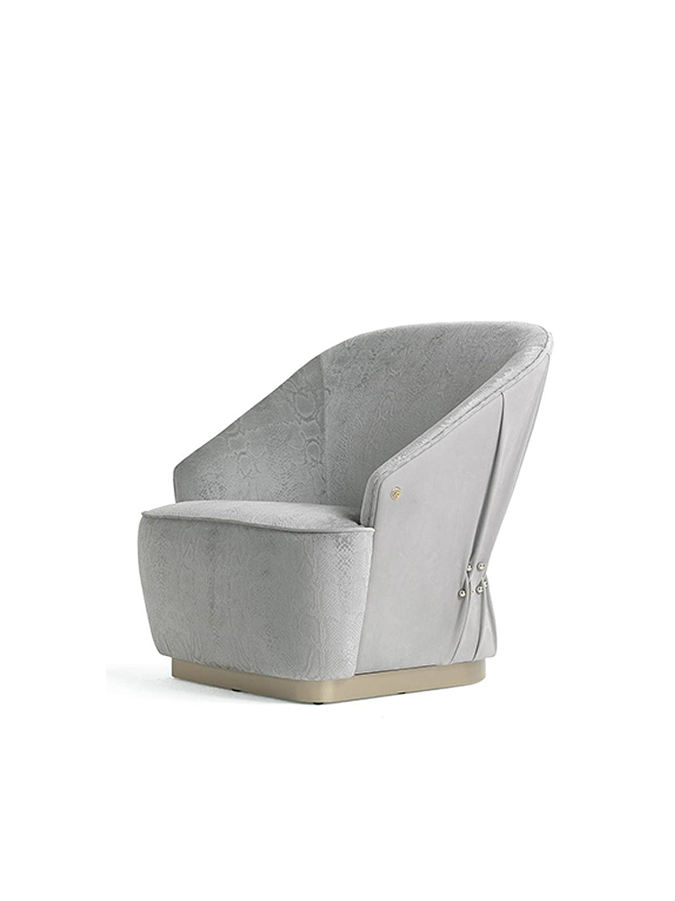 • The Inanda armchair, with its appealing design, is characterized by an interior upholstered with the fabrics from the Roberto Cavalli Home Inteirors collection and a leather exterior embellished with a special pleating and metallic piercings, recalling the fashion Maison’s leather accessories.