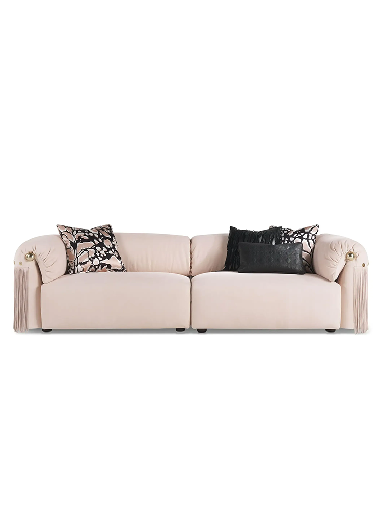 • Malawi is a welcoming, refined and charming sofa whose design is inspired by the deepest soul of the brand Roberto Cavalli: a piece of furniture with a feminine and ultra-chic style that can be found in the soft lines and in the sensuality of the upholstery. The artisanal tradition in the leather manufacturing, another typical element of the fashion brand, can be found in the decorative fringes enriching the armrests of the sofa.