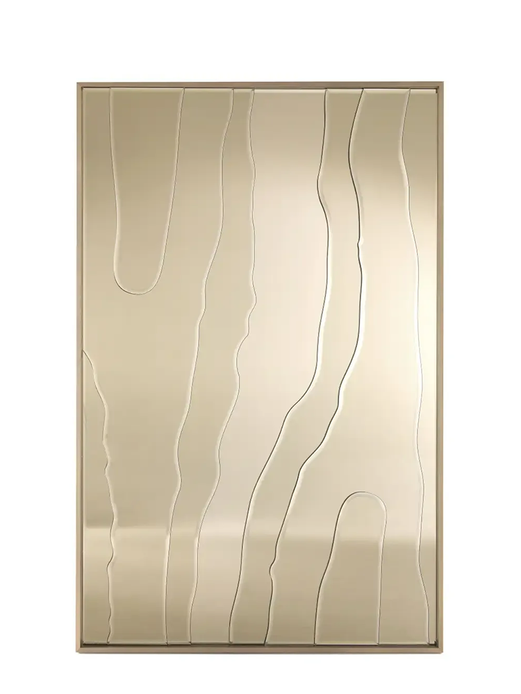 • The essence of nature in a collection inspired by the undulating waves of desert dunes. The Sahara line captures the organic beauty with motifs reminiscent of graceful sand formations. This piece features a wood structure covered with mirrors with the typical wave motifs and a metal frame in the brushed finishings from the collection.