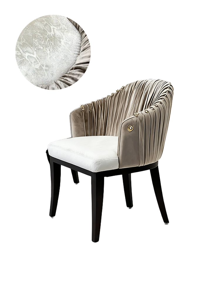 • Like the other elements in the line – sofa, armchair and pouf – the Sharpei chair is distinguished by its precious and refined tailoring, enhanced by the decorative metal sphere in the finishes of the collection.