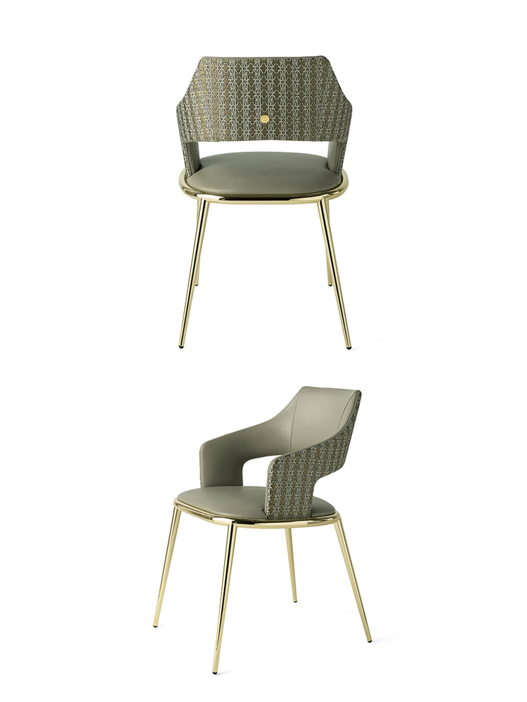 • Shira is a chair that combines design, Made in Italy craftsmanship and glamorous charm. The seat is characterized by light and slender lines, given by the thin cone-shaped legs and the opening of the backrest. The vibrant accents of the metal legs illuminate the whole, creating a singular balance that makes Shira a unique chair.