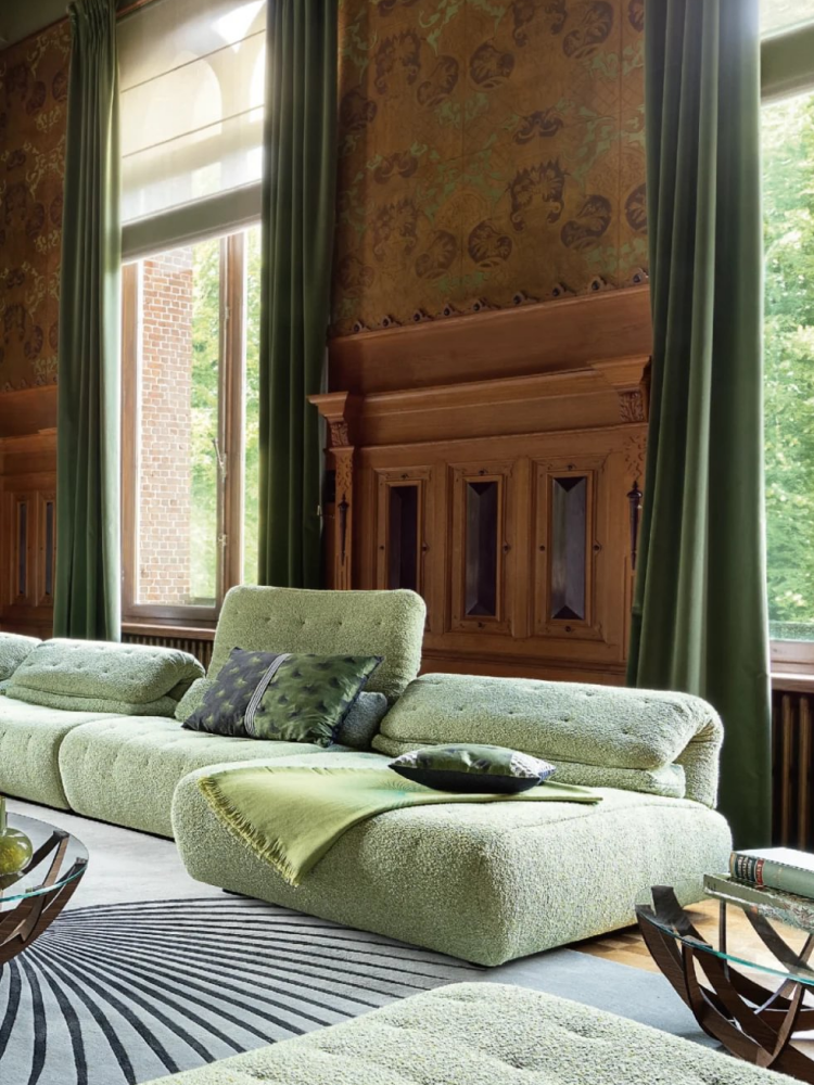 • The Lagune modular sofa from Roche Bobois is positioned as a signature furniture piece for "flowing spaces."