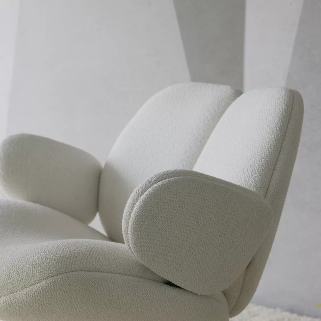 • "Pulp" means "paper pulp," and its core feature is its organic shape like solidified paper pulp—the backrest extends naturally from the armrests, with soft yet resilient lines and no obvious edges, as if carved from a single piece of material.
