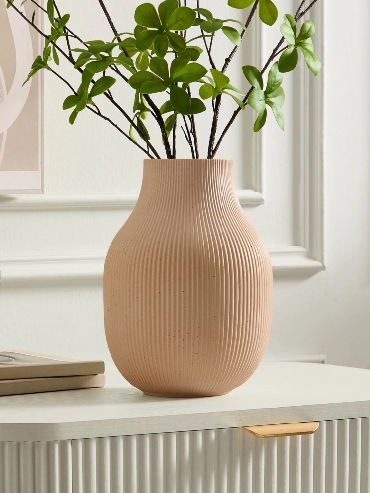 • The Rose Matt Ribbed Vase brings a warm, organic feel to any space with its soft curves and elegant texture.