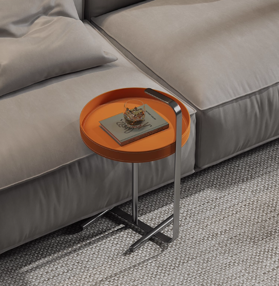 Saddle Leather Sofa Side Table In Living Room