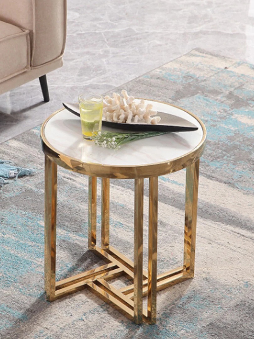 Scandinavian Style Home Furniture Side Table, Marble Coffee Table, Iron Side Table