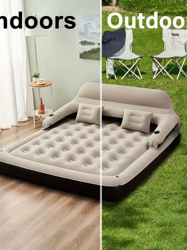 Self-Inflatable Mattress Air Bed With Headboard, Pillows And Air Pump Portable