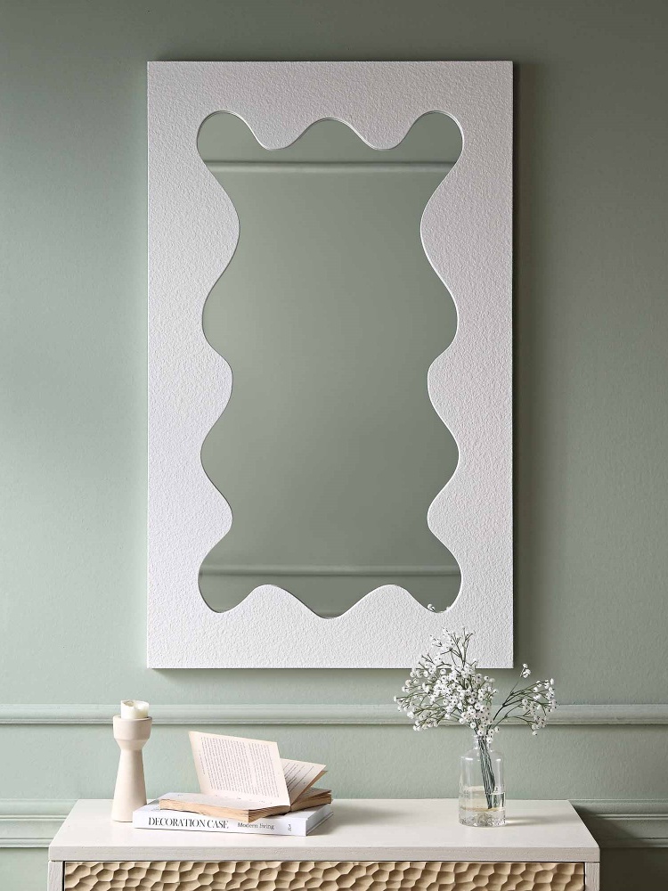 (Set Of 1)100 X 60 Cm Destin Wave Mirror, White Matte With Mounting Hooks