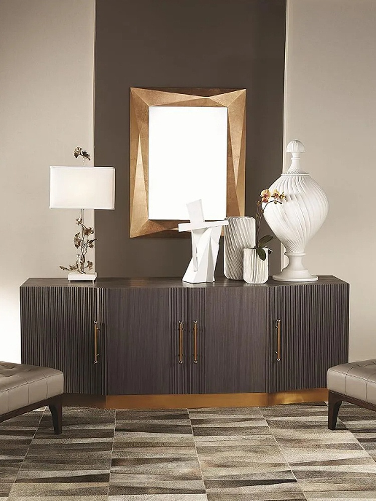 • Our Angular Mirror features an irregular frame with angular lines. Finished in luxurious gold leaf, this beautiful piece is sure to turn heads.ome. Place this mirror in a small entryway or use it to bring some light into a dark corner.