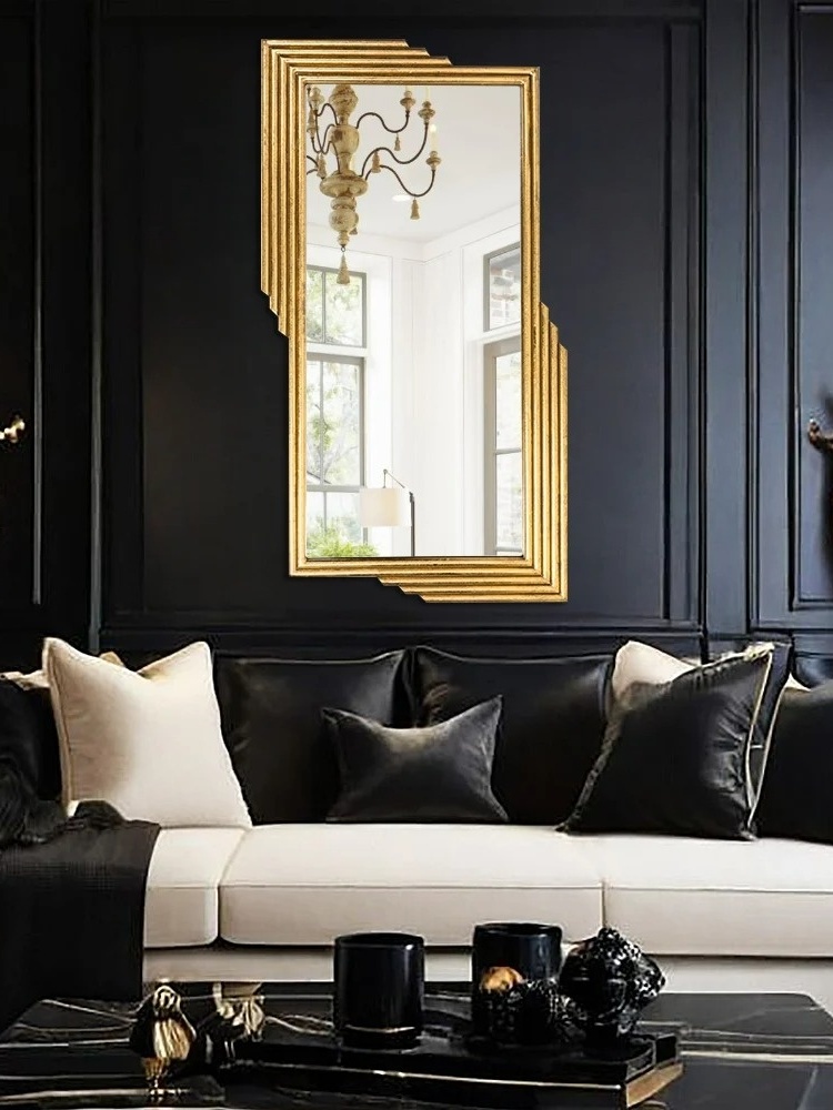 (Set Of 1)128 X 67 Cm Gold Metal Geometric Wall Mirror With Mounting Hooks