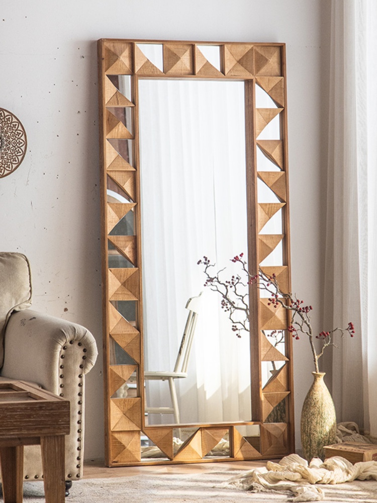 • Square artistic high-end full-length mirror with wooden frame.