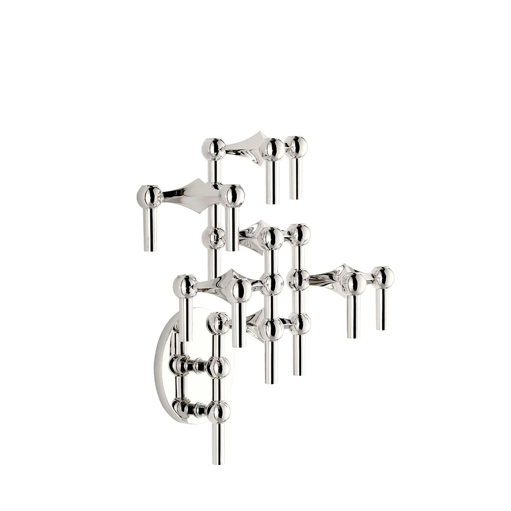 • The Nagel candleholder is a timeless classic that fuses art and functionality into a sculptural whole. With its three poles and streamlined chrome finish, it brings a touch of mid-century design aesthetic into any home. The modular construction allows you to combine and customize multiple Nagel candleholders to create your own personal sculpture - with or without candles. A perfect combination of form and function that takes your interior design to new heights.