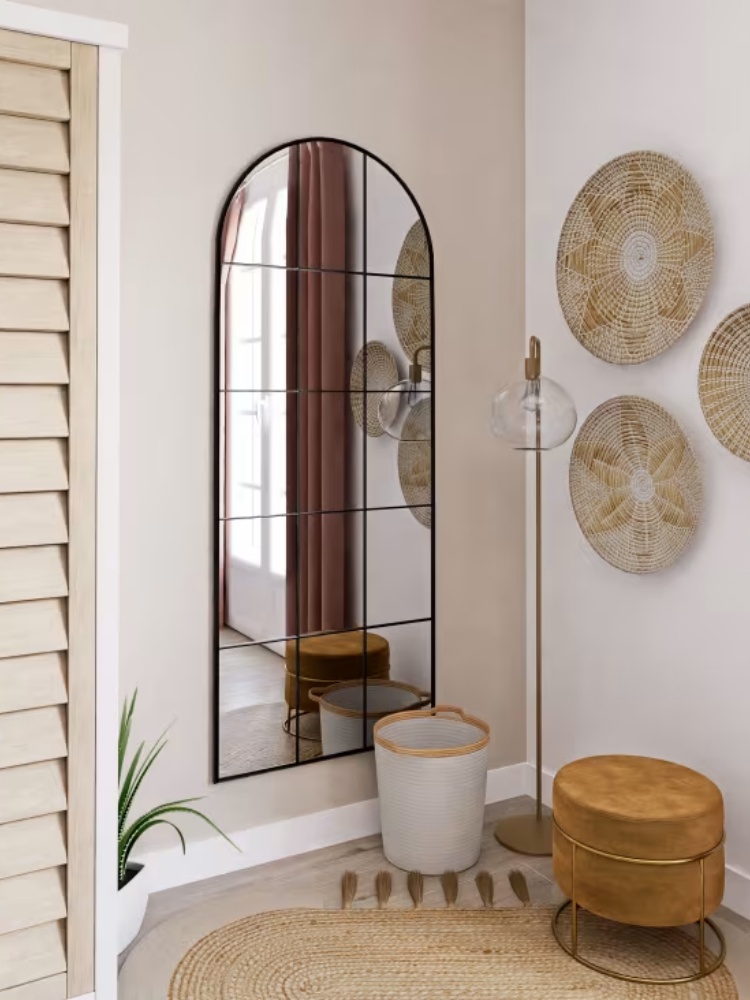 This mirror fits perfectly into a warm yet sophisticated interior. It adds a subtle, elegant accent to your living space.