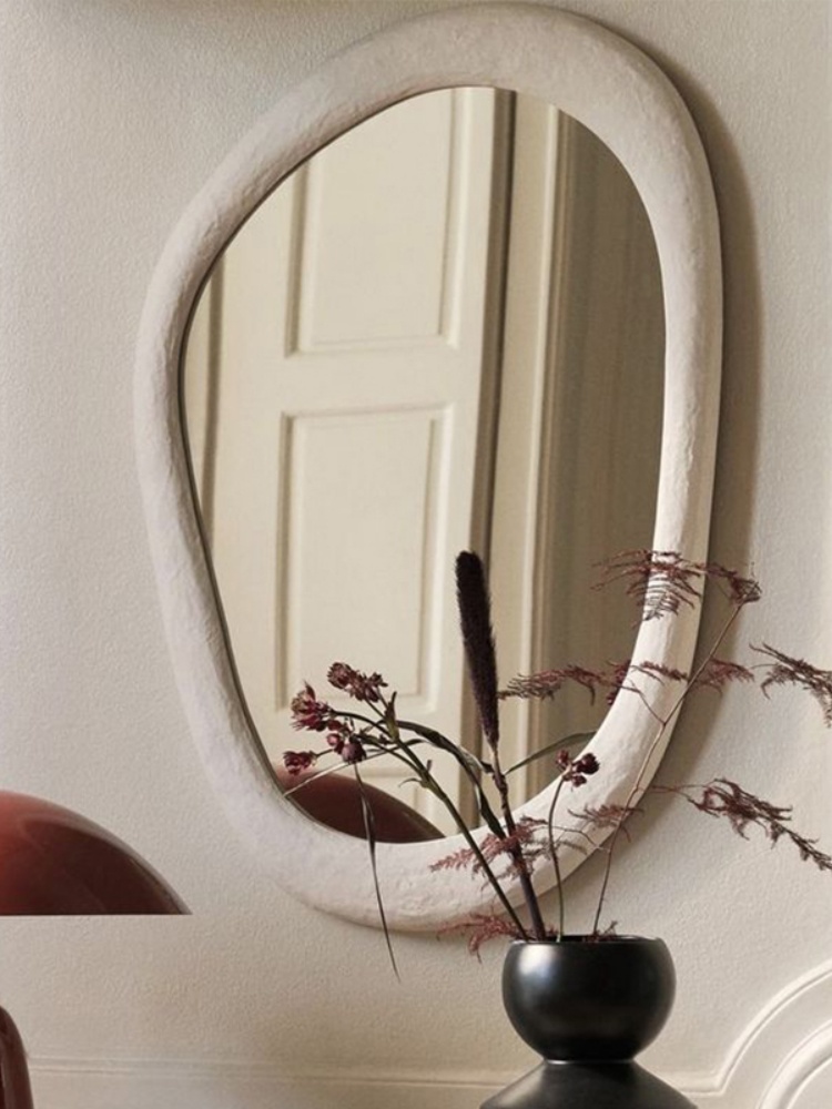 • Mirror with a metal frame in an asymmetrical, organic shape.